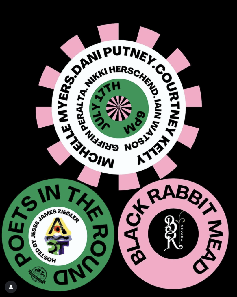 Artown poetry showcase happening @blackrabbitreno. We had a blast doing Poets in the Round last year and it’s back on July 17th! I’m excited to share the stage with four talented local poets and our special guest from Def Poetry Jam fame, Michelle Myers! Hosted by Reno’s own poet laureate, Jesse James Ziegler. – amethyst_noir